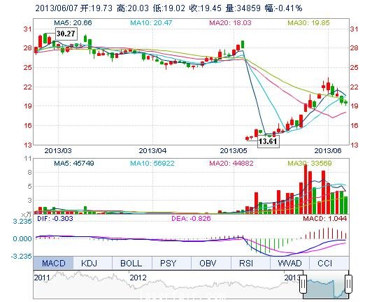 | 今 開: | 19.73 | 成交量: | 3.49萬手 | 振 幅: | 5.17% |