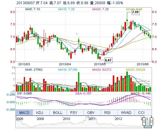 | 今 開: | 7.04 | 成交量: | 2.68萬手 | 振 幅: | 2.56% |