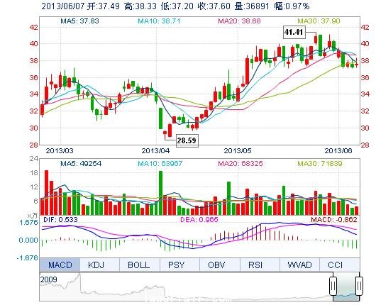 | 今 開: | 37.49 | 成交量: | 3.69萬手 | 振 幅: | 3.03% |