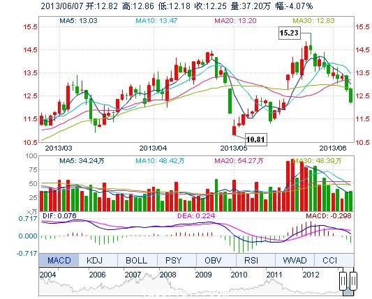 | 今 開: | 12.82 | 成交量: | 37.20萬手 | 振 幅: | 5.32% |