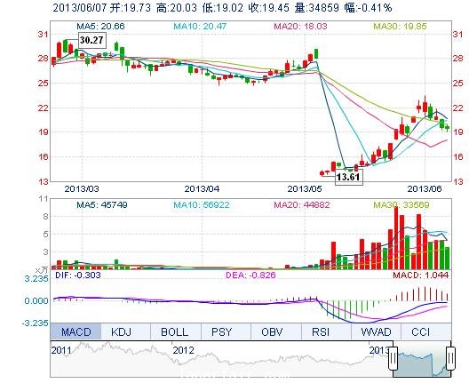 | 今 開: | 19.73 | 成交量: | 3.49萬手 | 振 幅: | 5.17% |