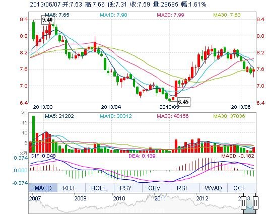 今開: 7.53 成交量: 2.97萬(wan) 手 振幅: 4.69% 最高: 7.66 成交額: 2230.46萬(wan) 元 換手率: 1.53% 最低: 7.31 總市值: 15.12億(yi) 市淨率: 3.13 昨收: 7.47 流通市值: ...