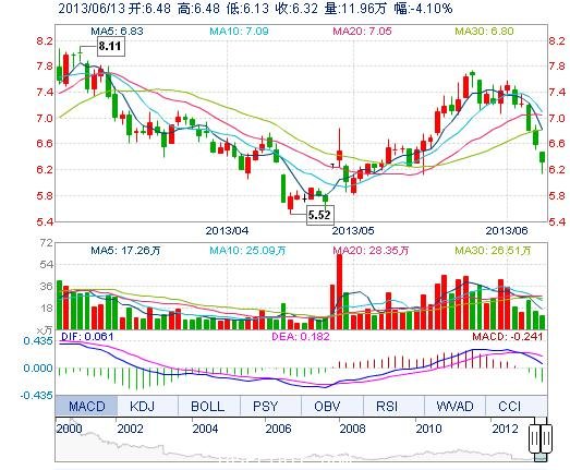 | 今 開: | 6.48 | 成交量: | 11.96萬手 | 振 幅: | 5.31% |