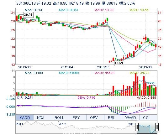 | 今 開: | 19.02 | 成交量: | 3.80萬手 | 振 幅: | 7.56% |
