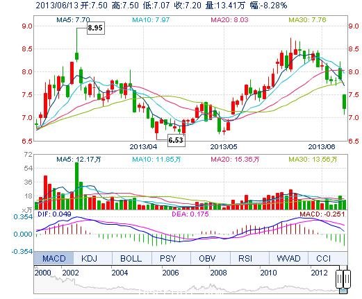 | 今 開: | 7.50 | 成交量: | 13.41萬手 | 振 幅: | 5.48% |