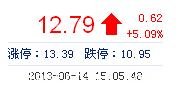 今開: 12.25 成交量: 36.90萬(wan) 手 振幅: 6.33% 最高: 12.97 成交額: 4.64億(yi) 元 換手率: 3.90% 最低: 12.20 總市值: 133.58億(yi) 市淨率: 3.85 昨收: 12.17 流通市值...