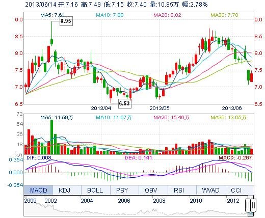 | 今 開: | 7.16 | 成交量: | 10.85萬手 | 振 幅: | 4.72% |
