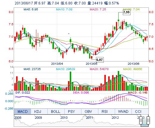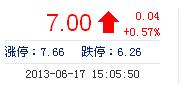 | 今 開: | 6.97 | 成交量: | 2.44萬手 | 振 幅: | 3.45% |