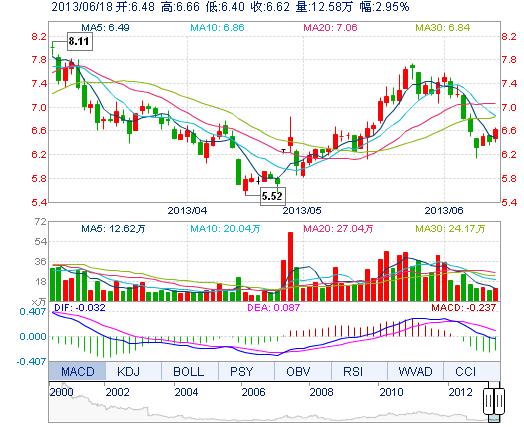 | 今 開: | 6.48 | 成交量: | 12.58萬手 | 振 幅: | 4.04% |