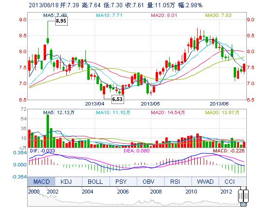 今開: 7.39 成交量: 11.05萬(wan) 手 振幅: 4.60% 最高: 7.64 成交額: 8271.31萬(wan) 元 換手率: 2.53% 最低: 7.30 總市值: 33.24億(yi) 市淨率: 2.37 昨收: 7.39 流通市值:...