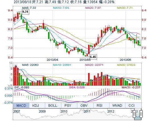 | 今 開: | 7.21 | 成交量: | 1.40萬手 | 振 幅: | 5.15% |