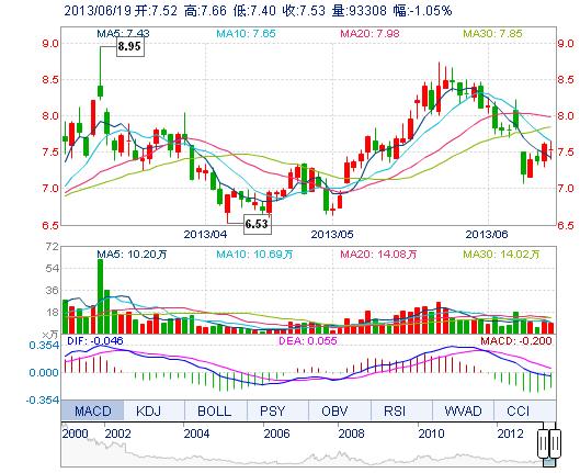 | 今 開: | 7.52 | 成交量: | 9.33萬手 | 振 幅: | 3.42% |