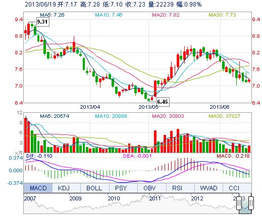 今開: 7.17 成交量: 2.22萬(wan) 手 振幅: 2.51% 最高: 7.28 成交額: 1599.65萬(wan) 元 換手率: 1.14% 最低: 7.10 總市值: 14.41億(yi) 市淨率: 2.98 昨收: 7.16 流通市值: ...
