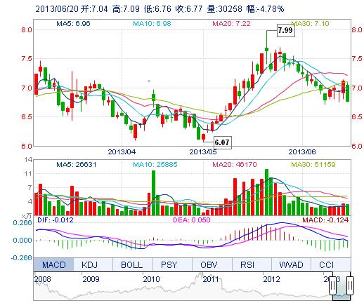 | 今 開: | 7.04 | 成交量: | 3.03萬手 | 振 幅: | 4.64% |