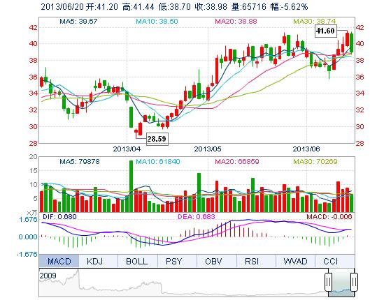| 最 高: | 41.44 | 成交額: | 2.65億元 | 換手率: | 2.29% |