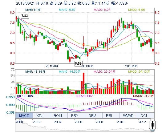 | 今 開: | 6.10 | 成交量: | 11.44萬手 | 振 幅: | 5.87% |