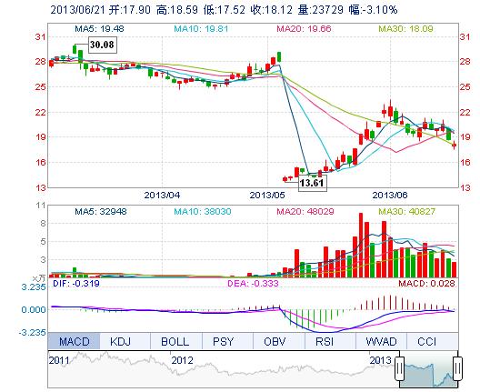 | 今 開: | 17.90 | 成交量: | 2.37萬手 | 振 幅: | 5.72% |