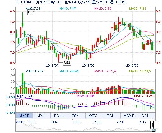 | 今 開: | 6.99 | 成交量: | 5.80萬手 | 振 幅: | 3.09% |