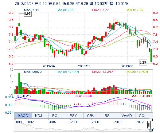 | 今 開: | 6.99 | 成交量: | 13.03萬手 | 振 幅: | 10.01% |