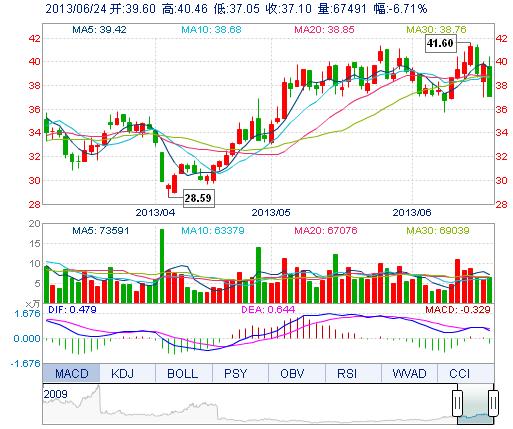 | 今 開: | 39.60 | 成交量: | 6.75萬手 | 振 幅: | 8.57% |