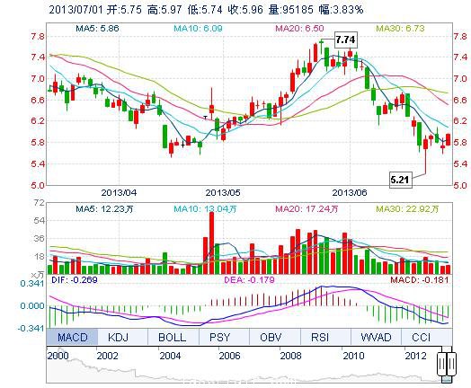 | 今 開: | 5.75 | 成交量: | 9.52萬手 | 振 幅: | 4.01% |