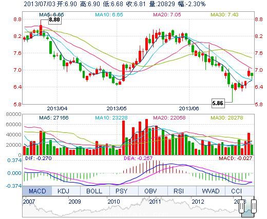 | 今 開: | 6.90 | 成交量: | 2.08萬手 | 振 幅: | 3.16% |