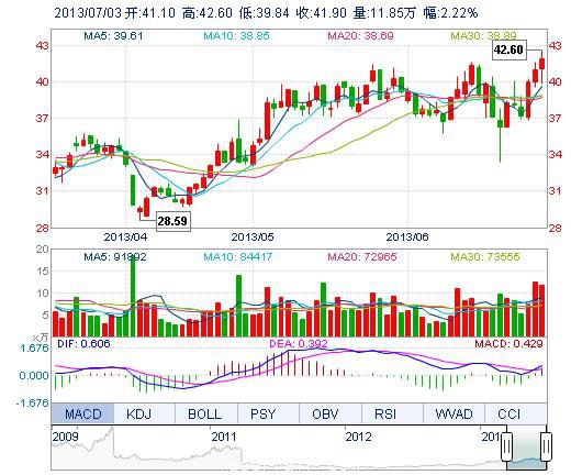 | 最 高: | 42.60 | 成交額: | 4.91億元 | 換手率: | 4.12% |