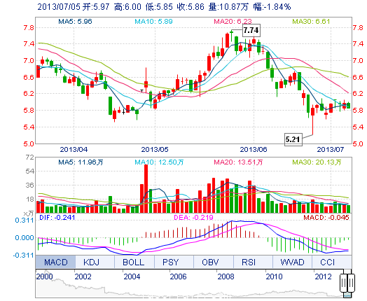 | 今 開: | 5.97 | 成交量: | 10.87萬(wan) 手 | 振 幅: | 2.51% |