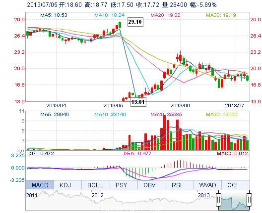 | 今 開: | 18.60 | 成交量: | 2.84萬手 | 振 幅: | 6.74% |