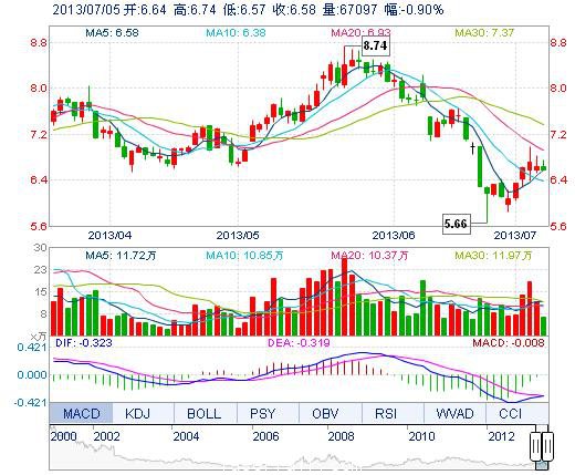 | 今 開: | 6.64 | 成交量: | 6.71萬手 | 振 幅: | 2.56% |