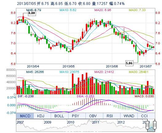 | 今 開: | 6.75 | 成交量: | 1.73萬手 | 振 幅: | 2.22% |