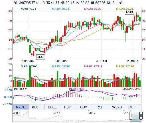 | 最 高: | 41.77 | 成交額: | 2.38億元 | 換手率: | 2.04% |