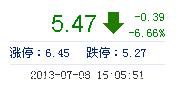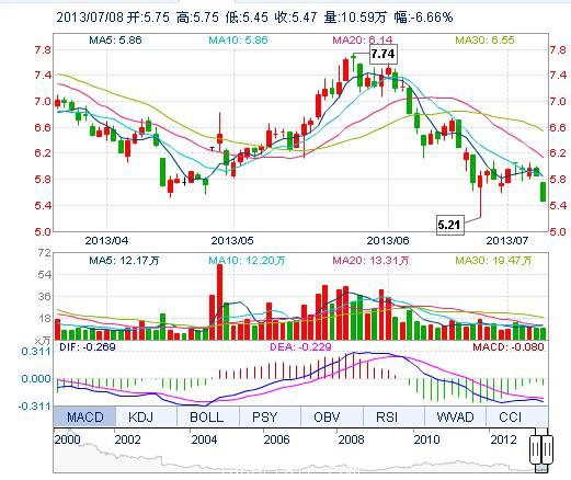 | 今 開: | 5.75 | 成交量: | 10.59萬手 | 振 幅: | 5.12% |