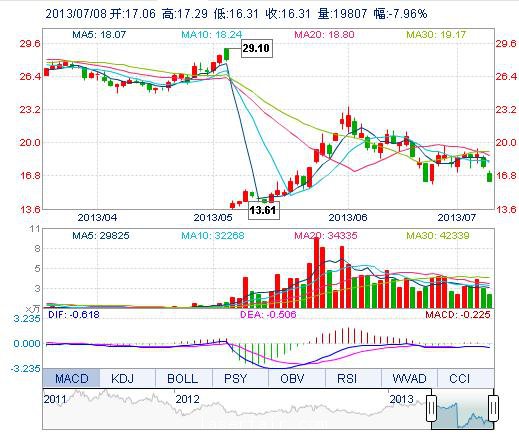 | 今 開: | 17.06 | 成交量: | 1.98萬手 | 振 幅: | 5.53% |