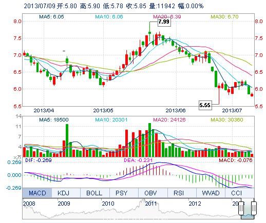 | 今 開: | 5.80 | 成交量: | 1.19萬手 | 振 幅: | 2.05% |