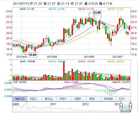 | 今 開: | 21.20 | 成交量: | 2.16萬手 | 振 幅: | 3.72% |