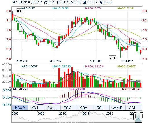 | 今 開: | 6.17 | 成交量: | 1.60萬手 | 振 幅: | 4.52% |
