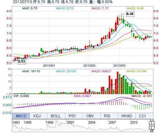 | 昨 收: | 6.76 | 流通市值: | 11.74億 | 市盈率TTM: | -- |