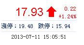 | 今 開: | 17.61 | 成交量: | 2.34萬手 | 振 幅: | 4.40% |
