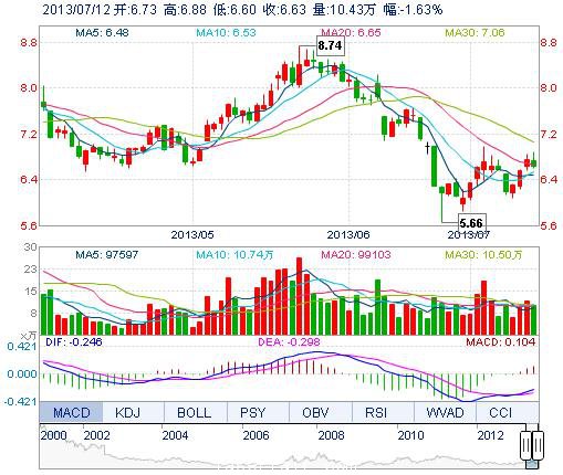 | 今 開: | 6.73 | 成交量: | 10.43萬手 | 振 幅: | 4.15% |