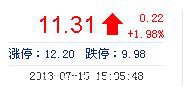 | 昨 收: | 11.09 | 流通市值: | 106.91億 | 市盈率TTM: | 19.97. |