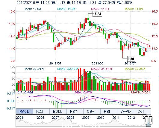 今開: 11.23 成交量: 27.94萬(wan) 手 振幅: 2.34% 最高: 11.42 成交額: 3.16億(yi) 元 換手率: 2.96% 最低: 11.16 總市值: 118.12億(yi) 市淨率: 3.41 昨收: 11.09 流通市值...