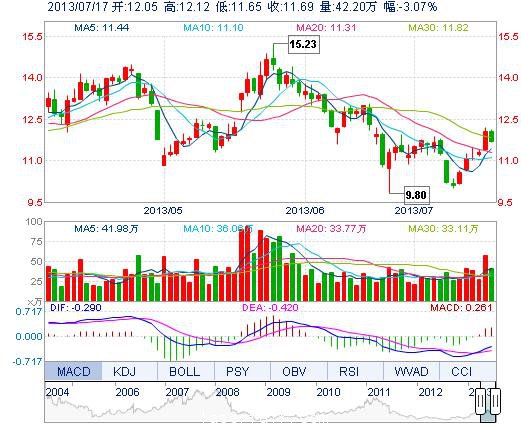 今開: 12.05 成交量: 42.20萬(wan) 手 振幅: 3.90% 最高: 12.12 成交額: 5.01億(yi) 元 換手率: 4.46% 最低: 11.65 總市值: 122.09億(yi) 市淨率: 3.52 昨收: 12.06 流通市值...