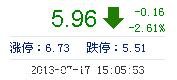 | 最 高: | 6.17 | 成交額: | 1.02億元 | 換手率: | 1.90% |