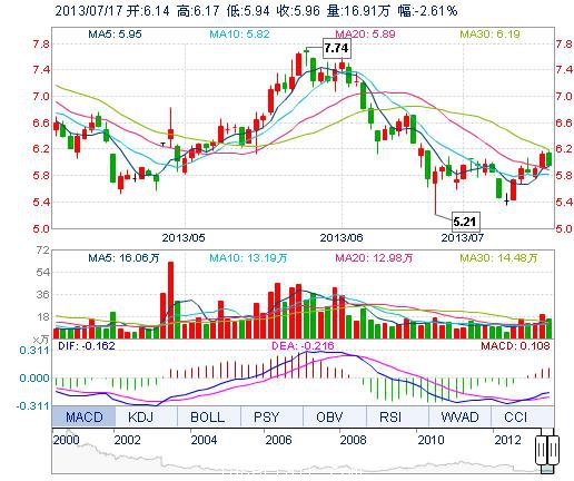 | 今 開: | 6.14 | 成交量: | 16.91萬手 | 振 幅: | 3.76% |
