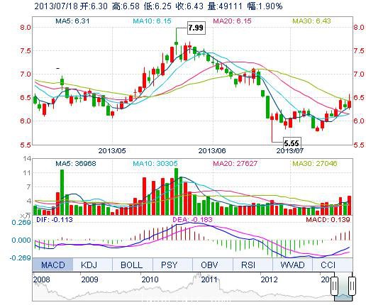 | 今 開: | 6.30 | 成交量: | 4.91萬手 | 振 幅: | 5.23% |