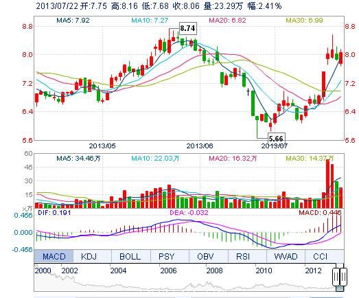 | 最 高: | 8.16 | 成交額: | 1.86億元 | 換手率: | 5.33% |