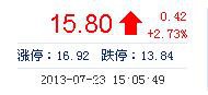 | 最 高: | 15.84 | 成交額: | 1.33億元 | 換手率: | 12.69% |