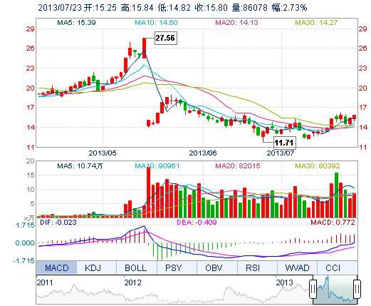 今開: 15.25 成交量: 8.61萬(wan) 手 振幅: 6.63% 最高: 15.84 成交額: 1.33億(yi) 元 換手率: 12.69% 最低: 14.82 總市值: 21.17億(yi) 市淨率: 3.31 昨收: 15.38 流通市值...