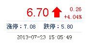 | 今 開: | 6.44 | 成交量: | 6.50萬手 | 振 幅: | 4.97% |